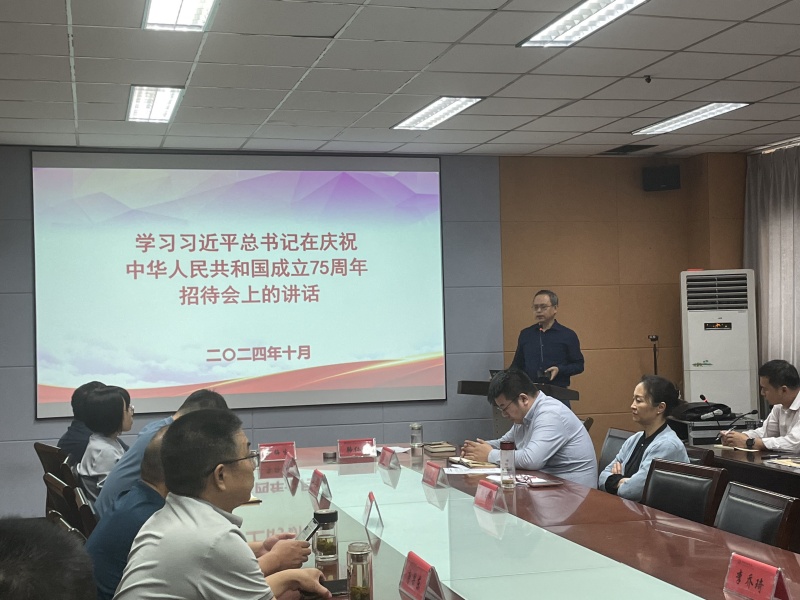 10月16日下午,化院党委在化学楼219会议室召开全体教师会议,组织集体学习习近平总书记在庆祝中华人民共和国成立75周年招待会上的讲话精神。化院党委书记骆仁林主持会议并领学。